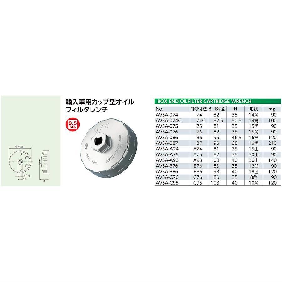 KTC 輸入車用カップ型オイルフィルタレンチ086 AVSA086-2285 【3730654】