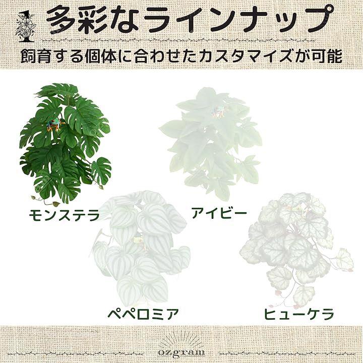 「熱帯雨林の隠れ家を再現」 リアルな造形の葉が爬虫類・両生類に快適な隠れ場所を提供しながら、行動するスペースを作り自然の雰囲気を再現します。