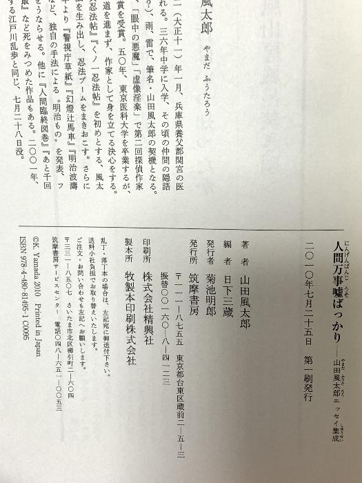 Everything in Human Life is a Lie - Collection of Essays by Futaro Yamada, published by Chikuma Shobo, by Futaro Yamada