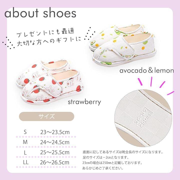 イチゴ柄、アボカド柄 サイズ23cm~26cm 4サイズご用意しております。