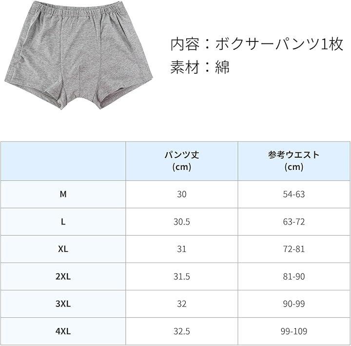 「パッケージ内容」内容:ボクサーパンツ1枚、素材:綿