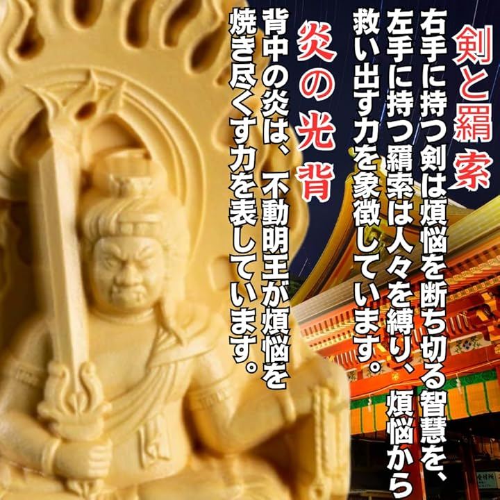 不動明王は、厄除け、煩悩退散、学業成就、商売繁盛など、現世における様々な利益をもたらすと信じられています。