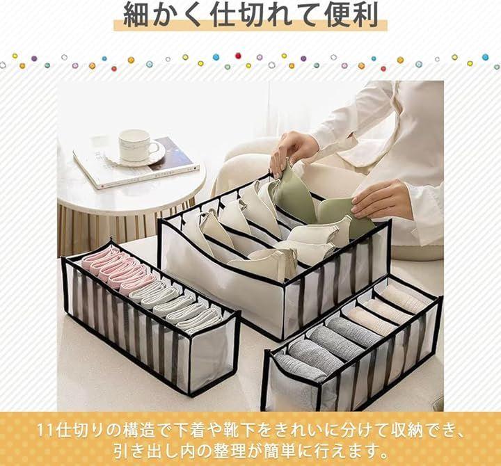 11仕切りの構造で下着や靴下をきれいに分けて収納でき、引き出し内の整理が簡単に行えます。