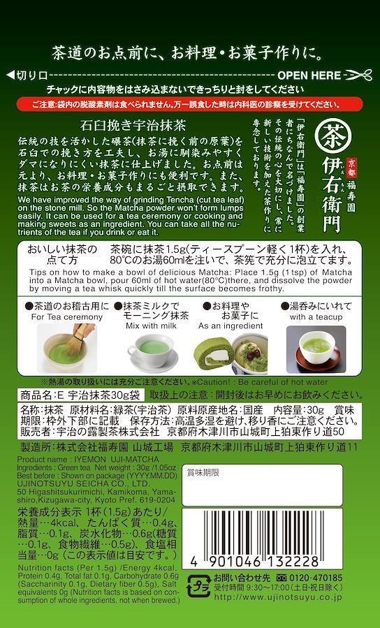 1、伝統の技を活かしたてん茶(抹茶を挽く前の原茶)を石臼で丁寧に仕上げた宇治抹茶です。2、お湯に馴染みやすく、ダマになりにくいのでお手前は元より、お料理・お菓子作りにもご使用いただけます。3、抹茶はお茶の栄養成分もまるごと摂取できます。ご使用シーン1茶道のお稽古用に2抹茶ミルクでモーニング抹茶3お料理やお菓子に4湯のみにいれて