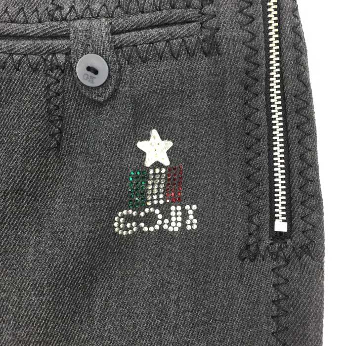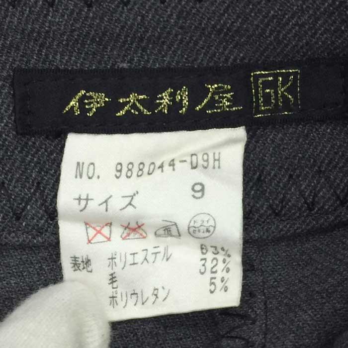 【管理番号】 008918【ブランド名】 伊太利屋【アイテム】 パンツ 9号【サイズ】 9 平置採寸(ウエスト:約35.5cm総丈:約103cm 股上:約30cm 股下:約73cm)【色・柄】 グレー【素材】 ポリエステル63%毛32%ポリウレタン5%【外観ランク】Bランク