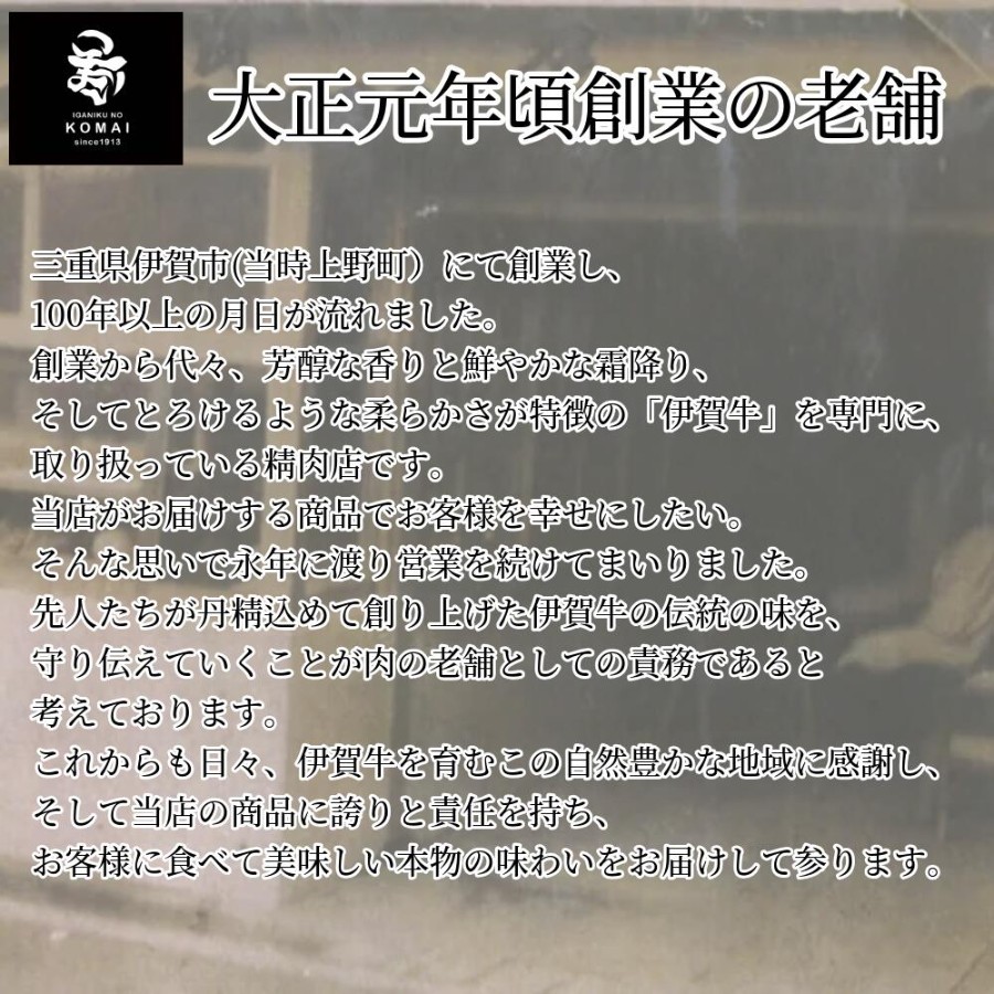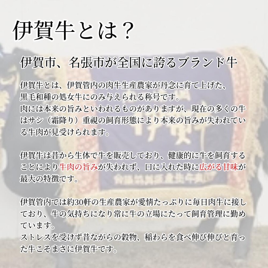 スライス取りの際に出る端を丁寧にまとめ、スネ・モモ・バラなどをバランスよく合わせました。きめ細かな繊維に伊賀牛の甘い脂が程よく絡み、炒め物は香ばしく、煮物はコク深く仕上がります。日常づかいにちょうど良い300gで、冷蔵庫にあると心強い一品です。