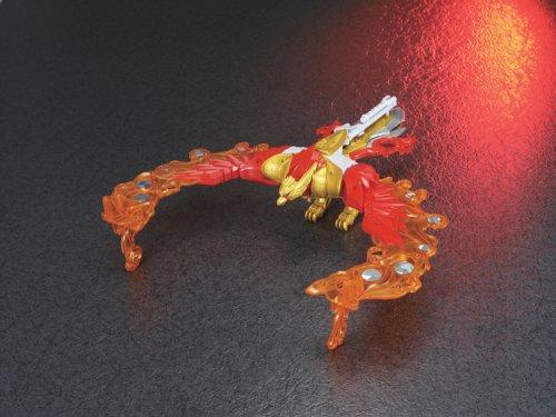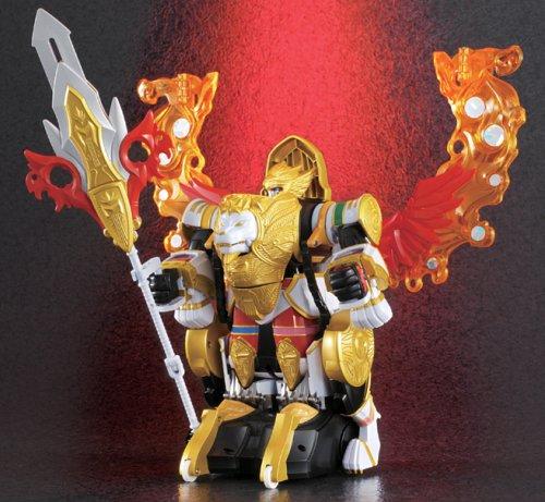 魔法戦隊マジレンジャーの伝説の最強マジン「マジレジェンド」が迫力の大きさで登場。ライオン型のマジライオンと鳥型のマジファイヤーバードが魔神合神したマジンで、炎の翼を背負い胸に精悍なライオンの顔が配置されたロボットとなる。