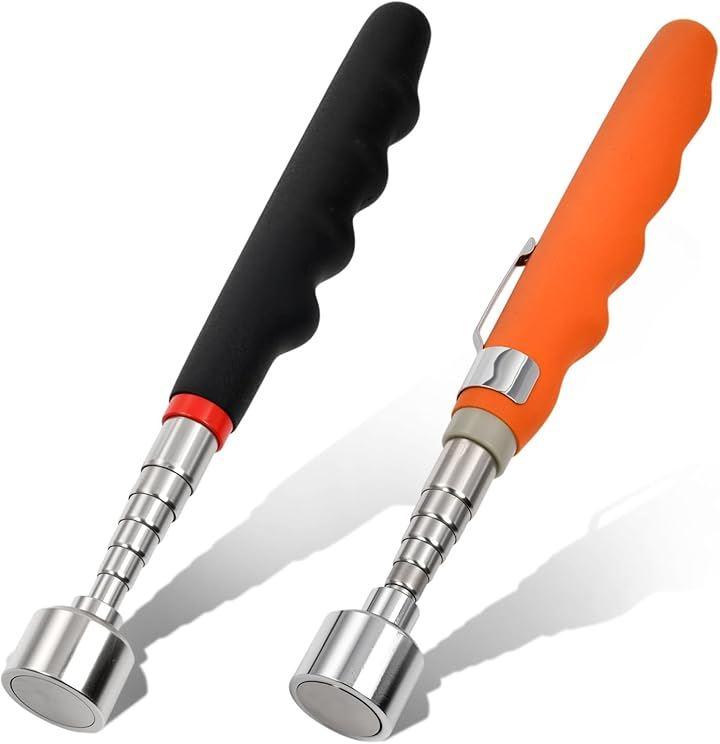 パッケージに含まれるもの:黒色の磁気ピックアップツール1個、オレンジ色の磁気ピックアップツール1個。
