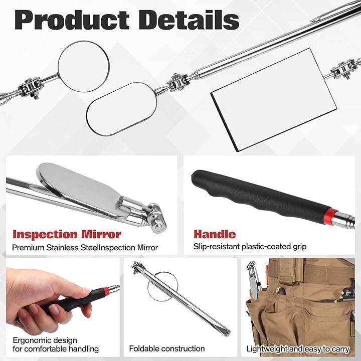 幅広い用途:伸縮式検査ミラーは、メーカー・整備士・検査員・歯科医・メイクアップアーティストなど、様々な職種で非常に有用なツールです。