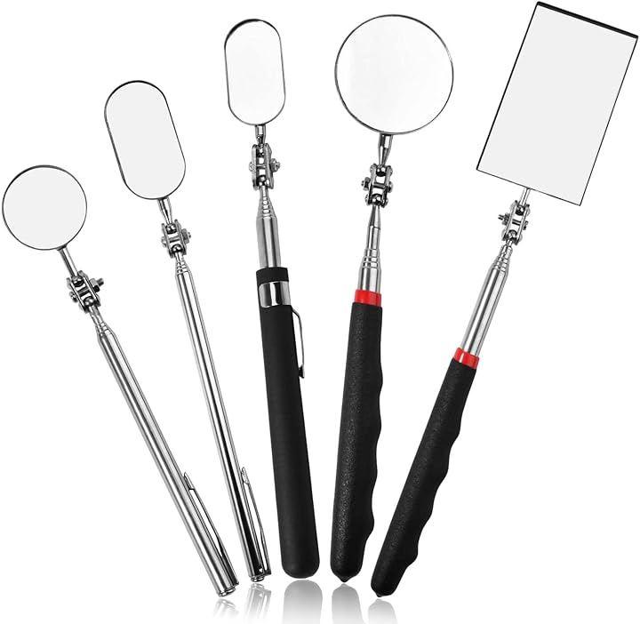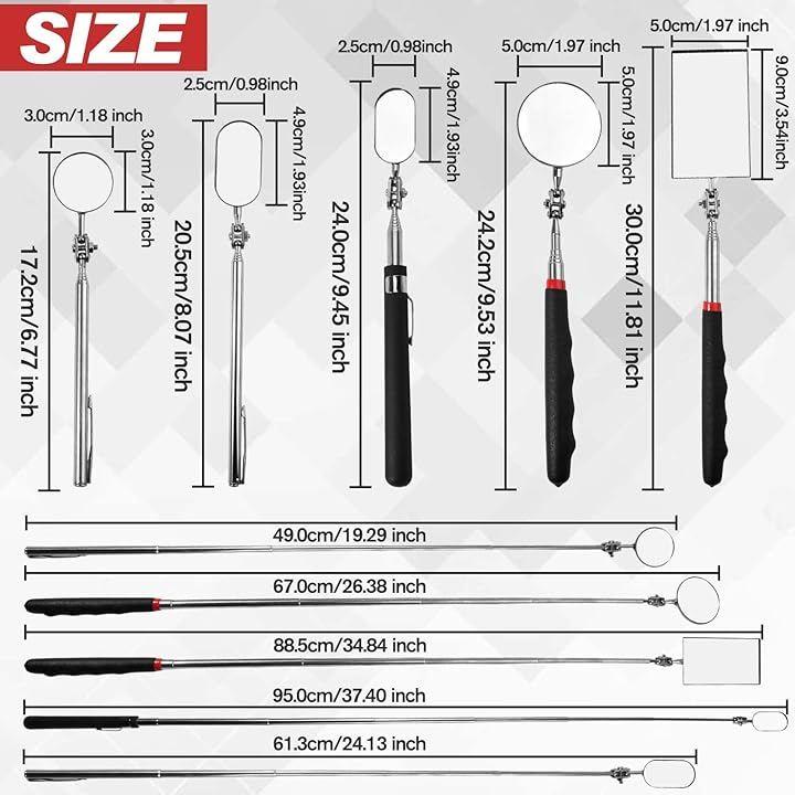 セット内容:5本の伸縮式検査ミラー(サイズ・デザイン違い)が含まれており、使用や交換のニーズを十分に満たします。