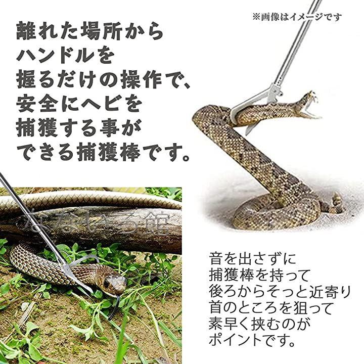 離れた場所から手元握りを握るだけの操作で、安全にヘビを捕獲する事ができます。