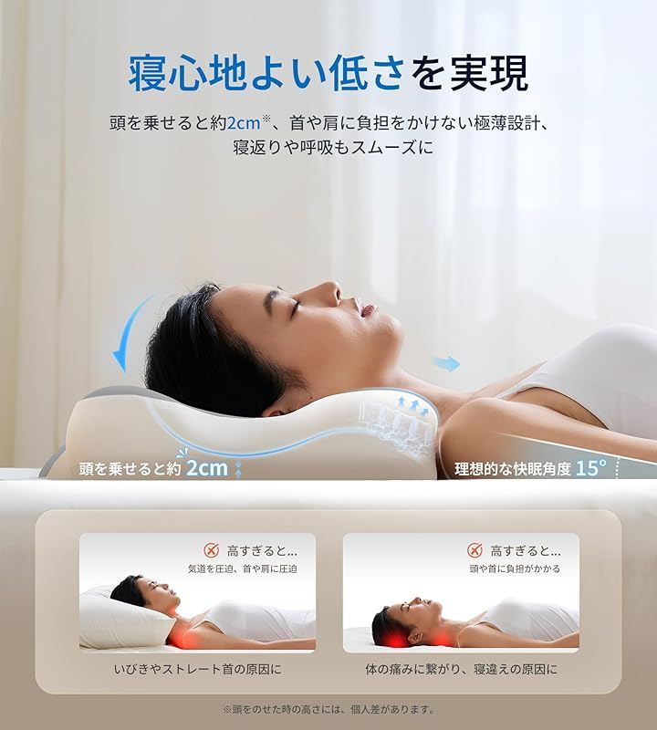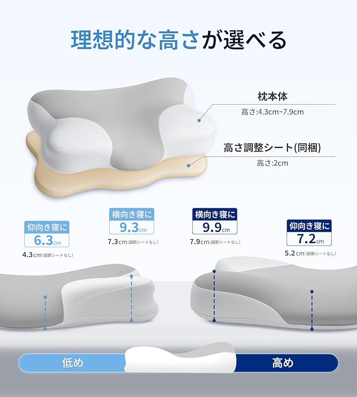 「自分だけの理想の高さに調整。快適な眠りを」睡眠の質を高めるためには、枕は自分の体に合った高さ選びが大切です。
