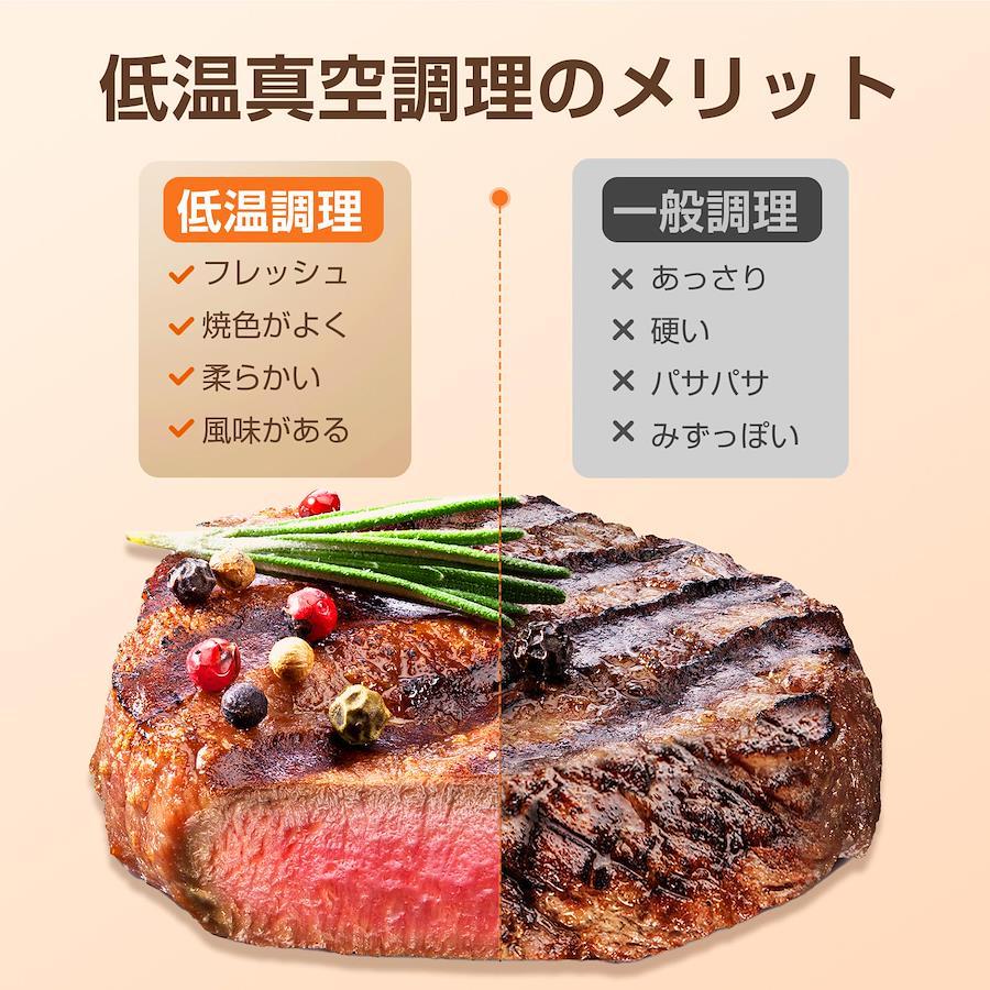 3営業日以内に発送≪新品未開封品≫:【低温調理 最上級クラスの料理を味わう】低温調理器を使うことで、火加減がコントロールしにくい食材を一定の温度で加熱させることが可能。なお、多様なレシピがつくことで、たとえ料理に苦手な方が使ってもミシュランの星を獲得したレストランのシェフのようなパフォーマンスが再現できる。低温調理法は食材の元の味を引き出せる秘訣である。肉の水分を保つ上、肉質をさらにやわらかくすることで、豊かな風味が味わえる。