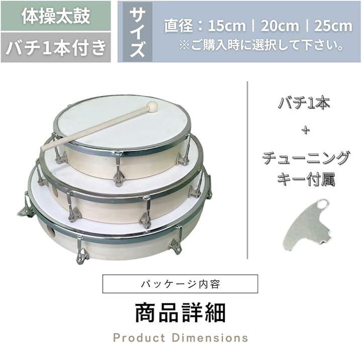 「商品内容」パッケージ内容:太鼓x1、バチx1、チューニングキーx1。