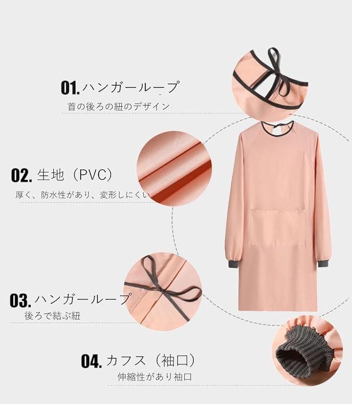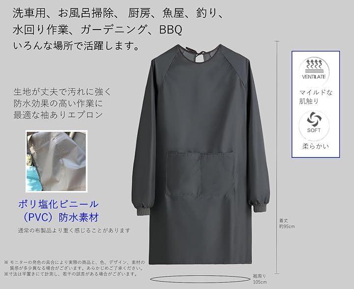 ポリ塩化ビニール(PVC)、撥水加工を施した丈夫な素材で長時間の水仕事にも最適、お手入れ簡単で衛生的です。