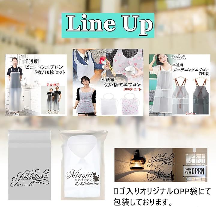 ご家庭の家事での御使用以外にも、介護施設での食事介助、 焼肉、ラーメン、パスタなど、汁や油が飛び跳ねやすいメニューを提供するレストランや食堂、保育園や幼稚園でのお子様のお絵かきや粘土遊び、ガーデニングなど、様々なシーンでお使いいただけます。