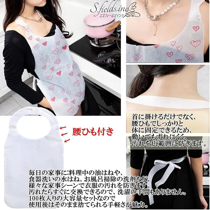 汚れたらすぐに交換できるので、布製エプロンのように洗濯の手間もありません。