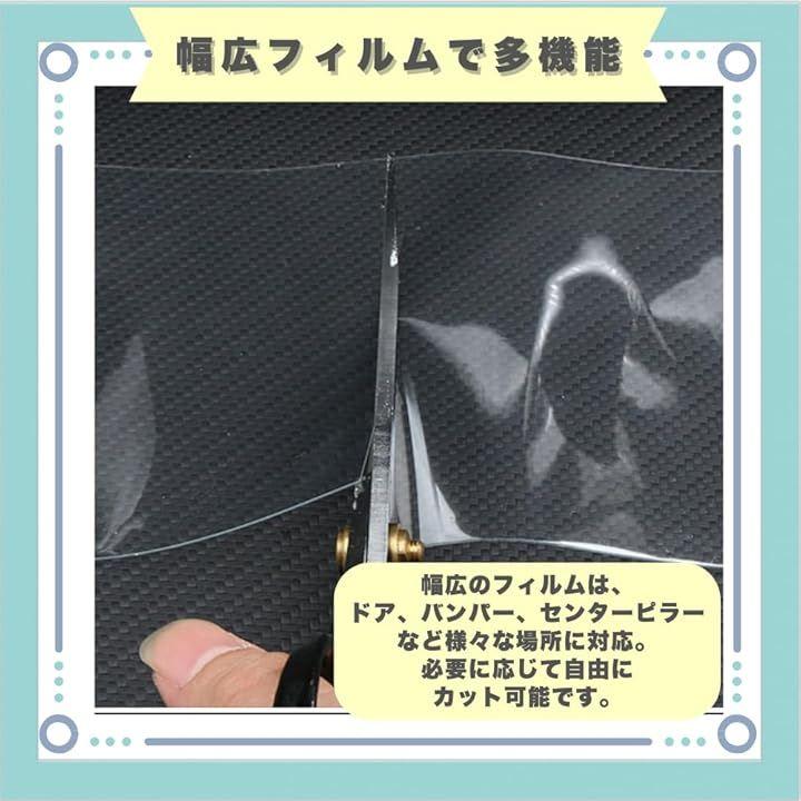 「幅広フィルムで多機能」幅広のフィルムは、ドア、バンパー、センターピラーなど様々な場所に対応。