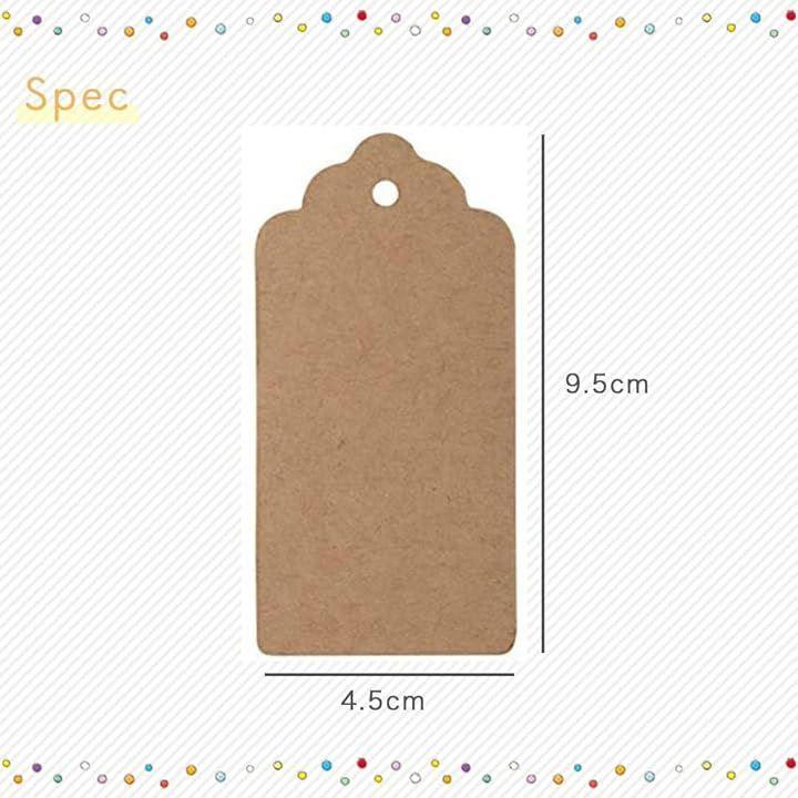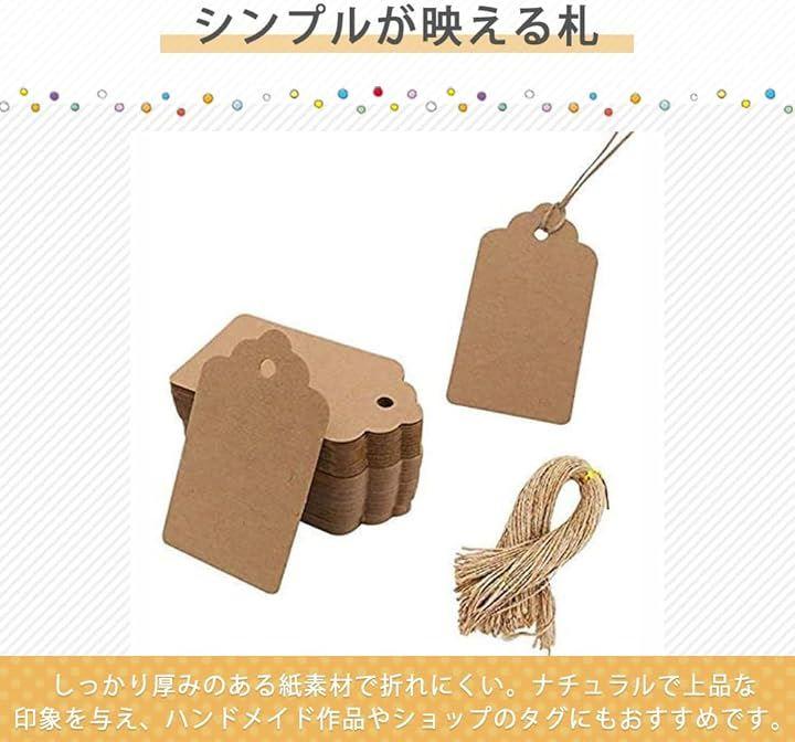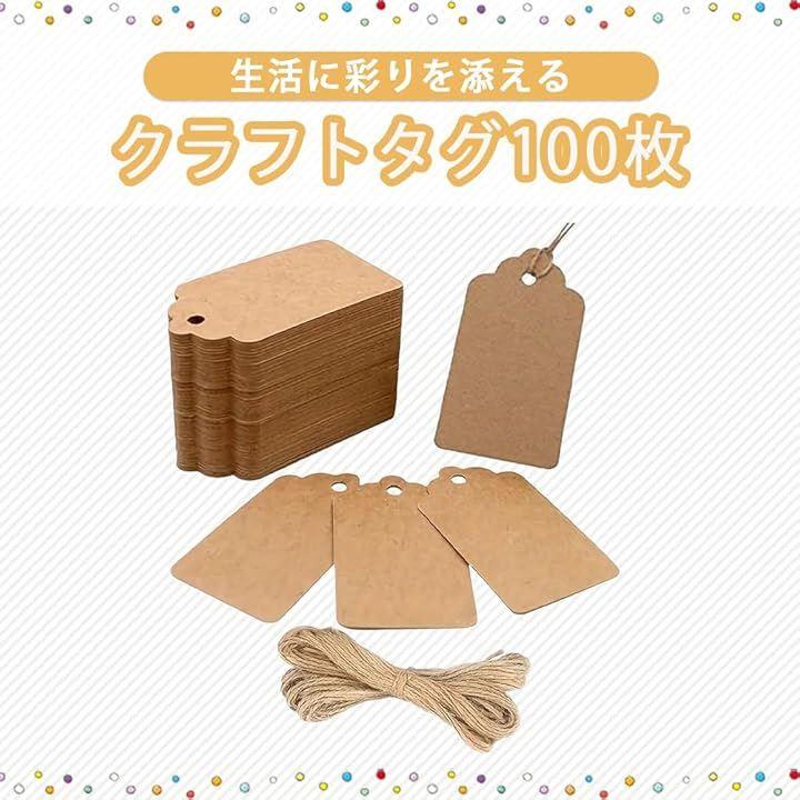 「商品詳細」クラフトタグ100枚、入数:100枚、サイズ:画像参照、カラー:ブラウン、ホワイト、素材:クラフト紙、麻紐