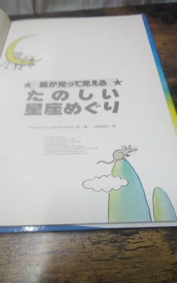 中古品です。表紙に汚れ、キズ、色あせがあります。中身に色あせがあります。偕成社の絵本、「星が光って見える たのしい星座めぐり」です。1991年発行です。