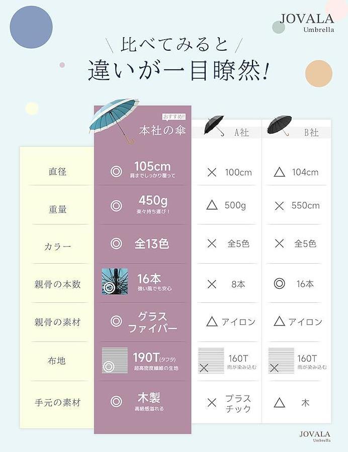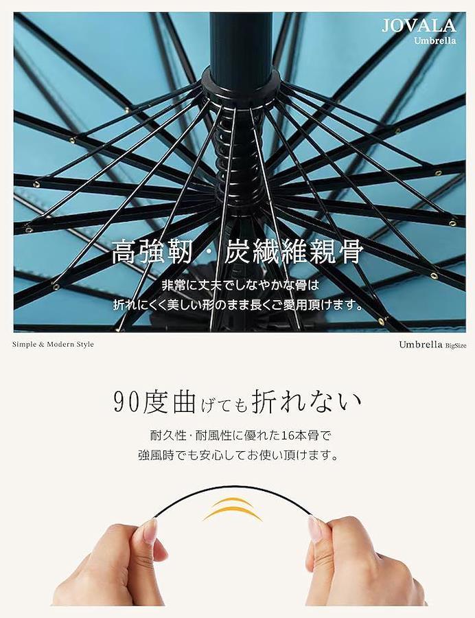 16本骨が作り出す曲線が美しい円型、従来の8本骨の2倍数量で耐強風と耐久性の両面を実現できます。