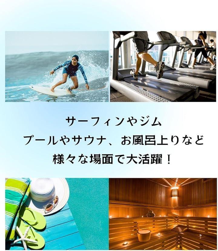 さらに速乾性に優れているため、濡れてもすぐ乾き、海やサウナ、お風呂上がりでも快適な状態を保ちます。