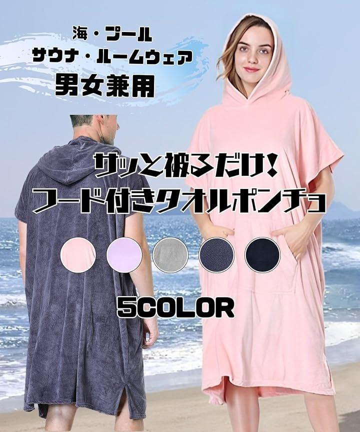 「ポンチョ 着るタオル サーフィン ポンチョ サウナ ポンチョ 着替え ポンチョ メンズ」吸水速乾マイクロファイバーで体と髪を素早くドライ。