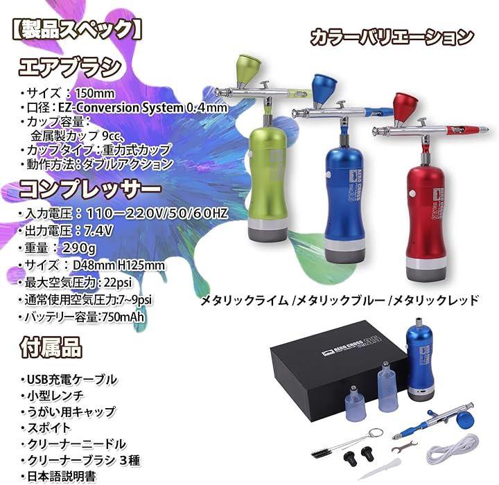 軽く堅牢なアルミボディでさらに軽く、内部構造を改良し壊れにくい設計に、 正統進化を遂げた充電式コンプレッサーが多彩な塗装を実現するEZ-Conversion System対応のダブルアクションタイプエアブラシを搭載。 さらに洗練されたパフォーマンスを体感してください。。