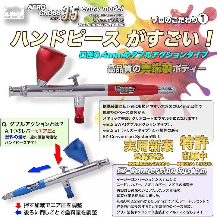 プロ監修のハンディーエアブラシ セットの入門機。 aurochs (オーロックス)ハンディーコンプレッサー&エアブラシ セットはテーマパークや映画、TV等の美術特殊塗装を手がける現役アートペインターの責任監修。