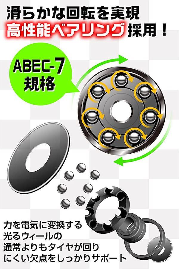 ・「ABEC-7ベアリングでスムーズな走行」ベアリングはタイヤの回転をスムーズにする部品です。