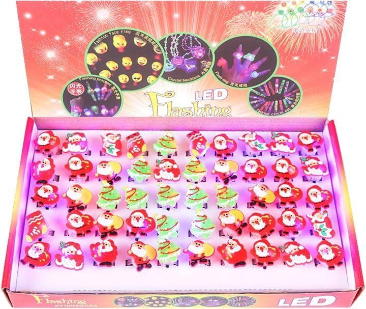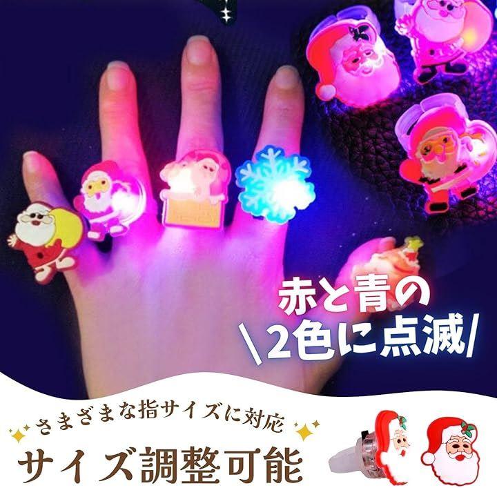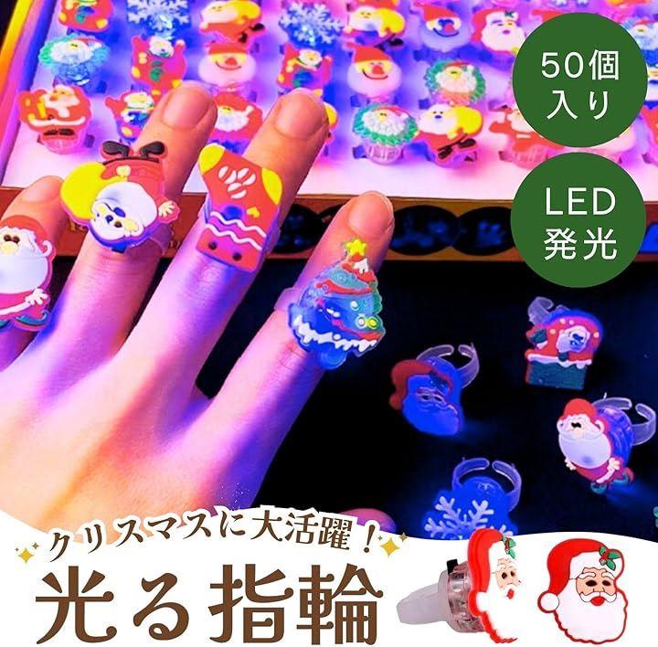 「楽しいクリスマス演出」 クリスマス光る指輪は、合計50個の指輪がランダムに入っており、どれも個性的でかわいいデザイン。