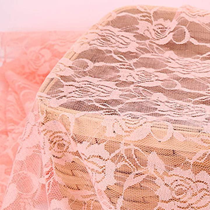 ・さらりと肌触りの良いレース 生地 カラー:ライトピンク(桃色) 長さ:約2mx幅1.5m 重量:約150g (1m2約50g) 素材:ポリエステル *手動計測の為長さに±数cmの誤差が有ります。