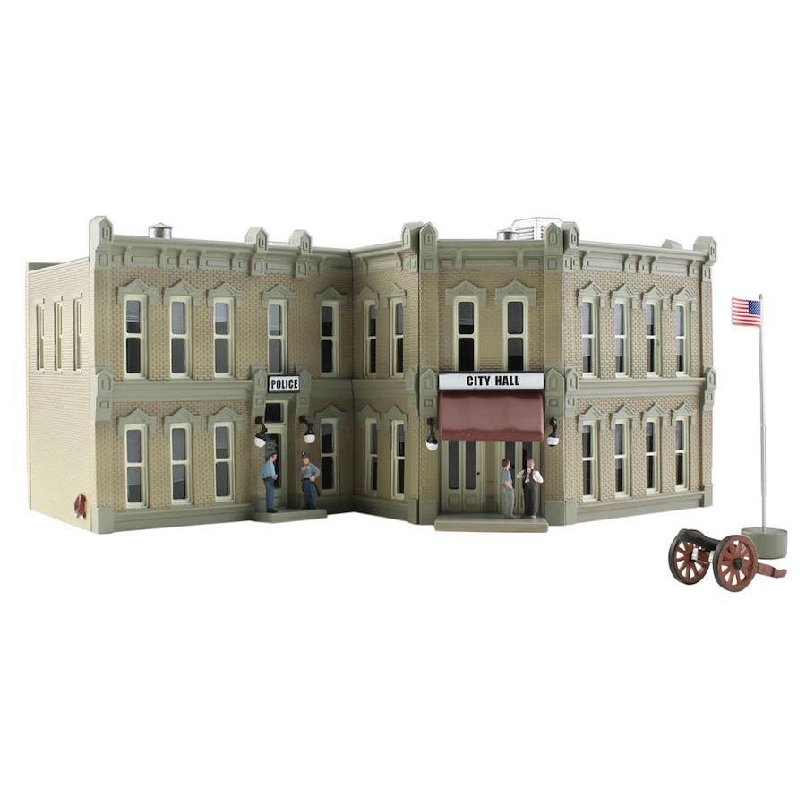 Municipal Building2階建てにレンガ張り市役所です。警察署が併設され、玄関前には星条旗が掲揚され、大砲のモニュメントと警備の警察官がいます。サイズ:約 5.15 x 7.38 x 高さ3.65 cm