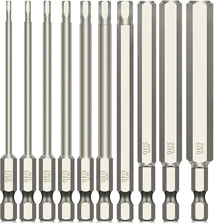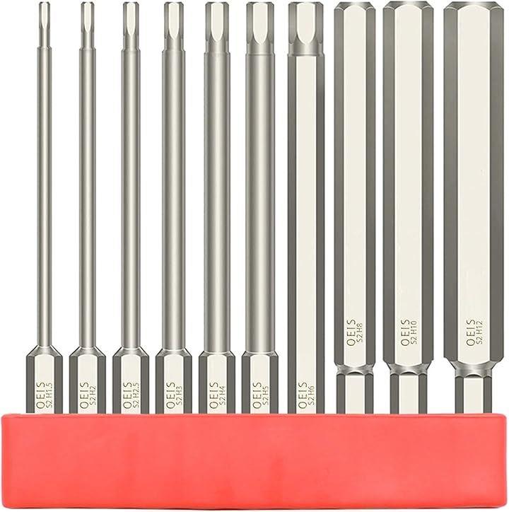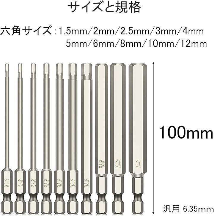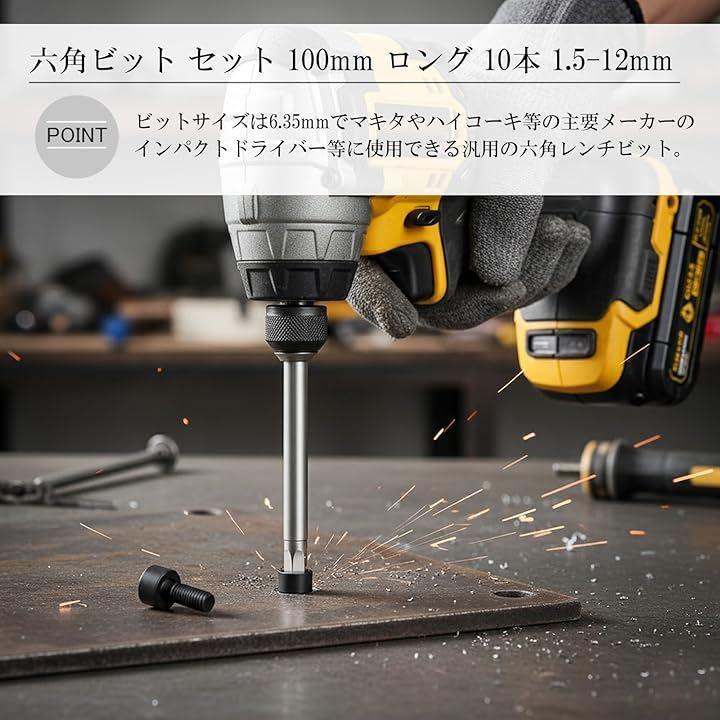 「全長100mmロング仕様」六角ビットセット 10本組 (H1.5mm~H12mm) | 狭所作業・深穴作業に対応する電動ドライバー用ロングビット