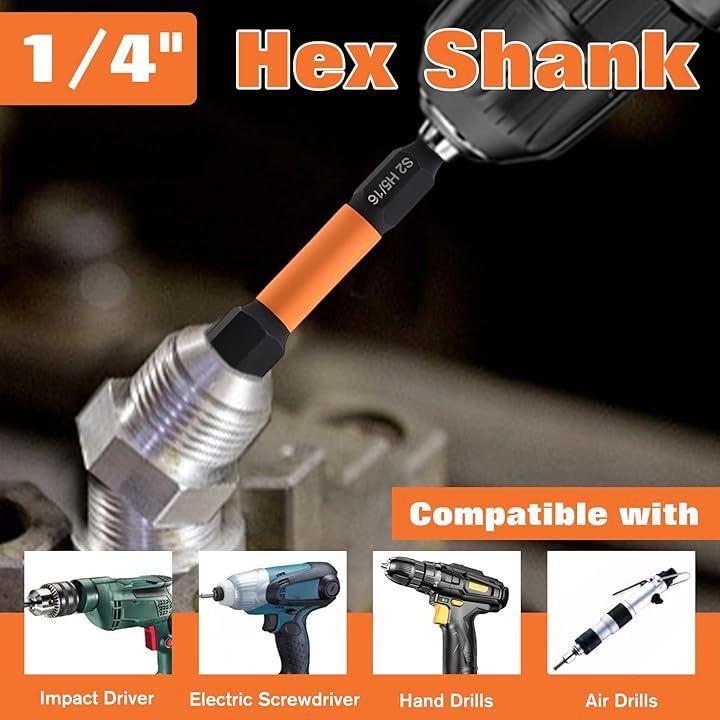 1/4インチのヘックスシャフトを採用しているため、ほとんどの標準的なドリルやドライバーと互換性があり、ヘックスソケットネジの効率的かつ精密な締め付けが可能です。