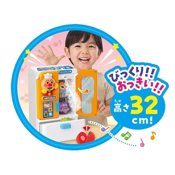 シューっと冷気がでるアンパンマンの冷蔵庫! スマートパネルで楽しく操作しよう! 扉を開けると水蒸気が吹き出して本物みたい!