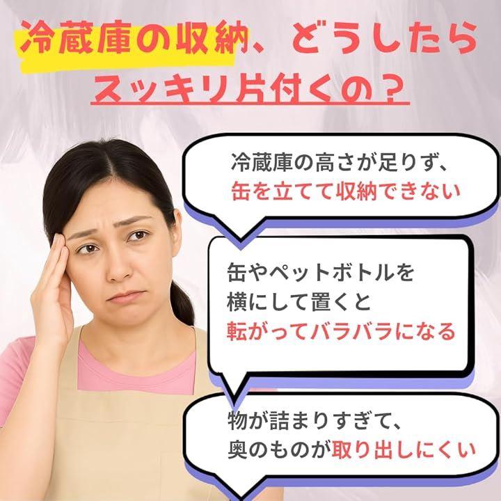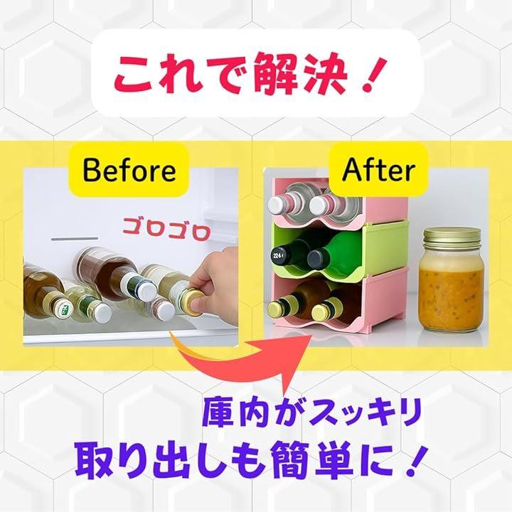 「冷蔵庫・キッチンの整理に最適」 ペットボトルやワインボトル、缶ビールなどを横向きに収納できるボトルホルダーです。