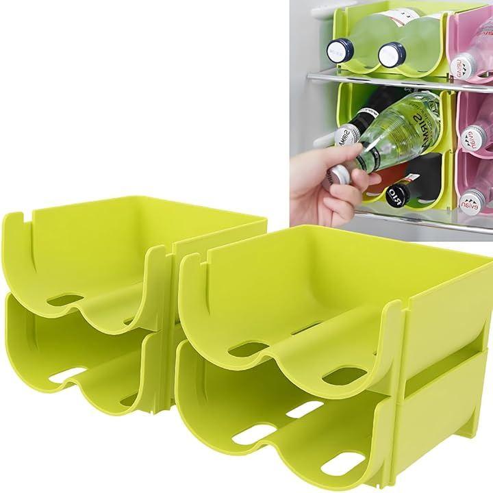 冷蔵庫内やキッチン棚で転がりがちなボトル類をしっかり固定し、見た目もすっきり。