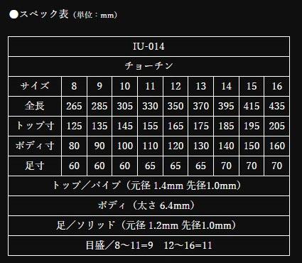 管理釣り場から野釣り場まで幅広く使用可能。 夏はチョーチン、冬は段差の底釣とオールシーズンに対応します。 スペック表(単位:mm) サイズ:9 トップ寸:135 ボディ寸:90 足寸:60 全長:285 トップ/パイプ(元径 1.4mm 先径1.0mm) ボディ(太さ 6.4mm) 足/ソリッド(元径 1.2mm 先径1.0mm) 目盛/9 ※実物と色が違って見える場合があります。あらかじめご了承下さい。