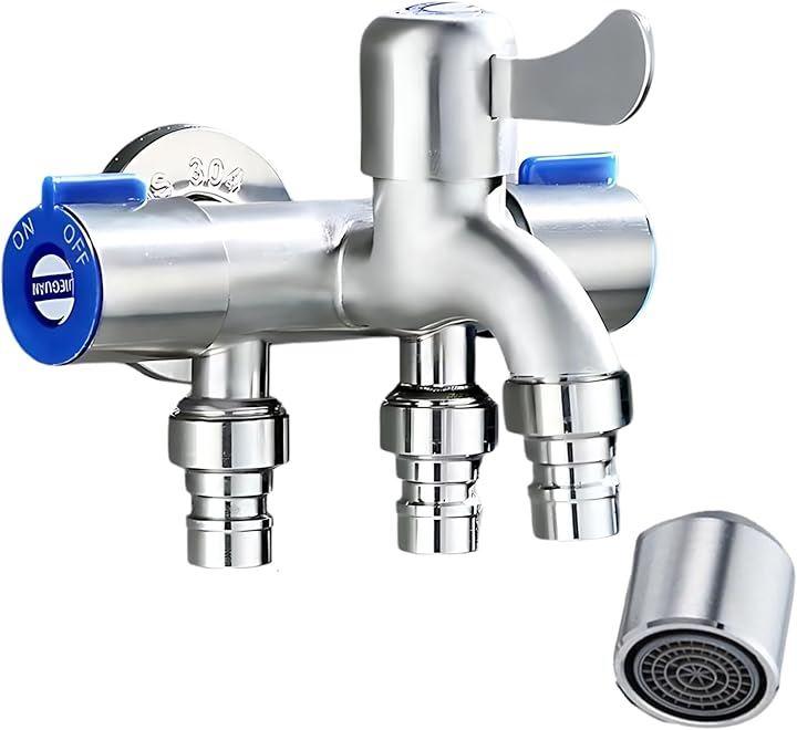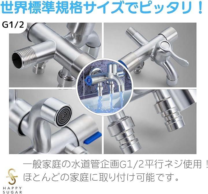 「多機能で効率的な3分岐設計」 一つの蛇口から3つの出水口があり、洗濯・散水・洗車など複数の用途を同時に行えます。