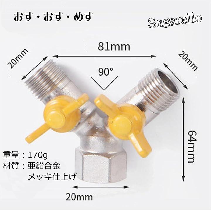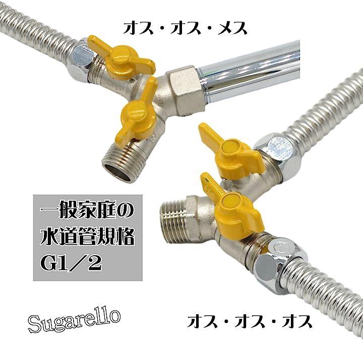 ・一般家庭で使われているG1/2規格ですので、トイレのロータンク、洗濯機水栓、洗面台の給水管、キッチンの水栓金具から分岐させて使用できます。