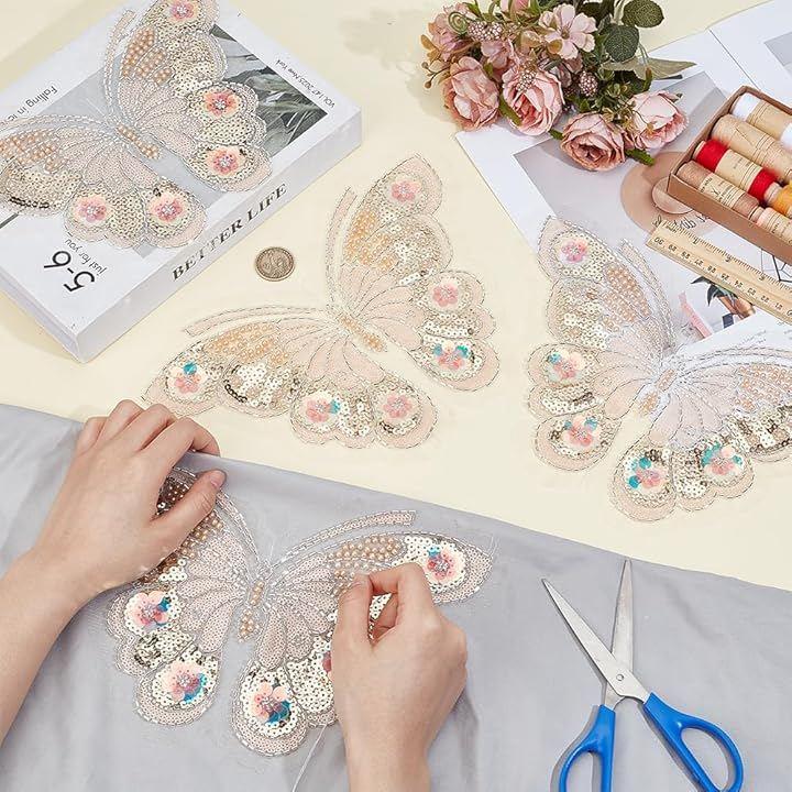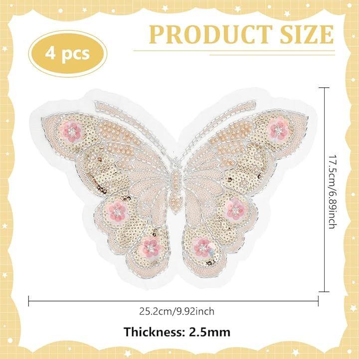 サイズ詳細:各蝶のアップリケのサイズは17.5x25.2cmで、厚さは2.5mmで、さまざまなプロジェクトにエレガントな装飾要素を作り出します。