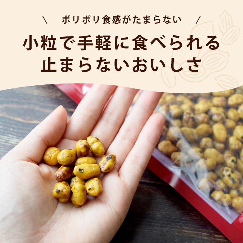 -止まらないおいしさ-ポリポリ香ばしい衣をまとった落花生の歯応え、 コクのある「特製甘辛醤油」の豊かな風味。豆専門店が作った、こだわりの「うま辛ピー」 食べ始めると止まらないおいしさです。