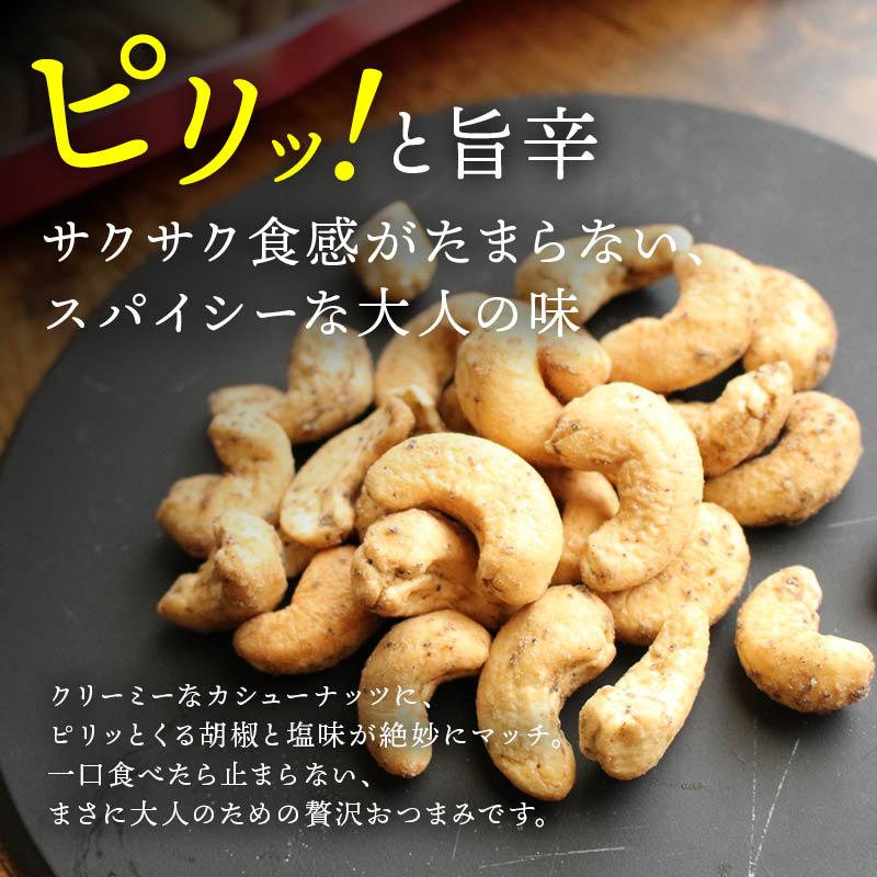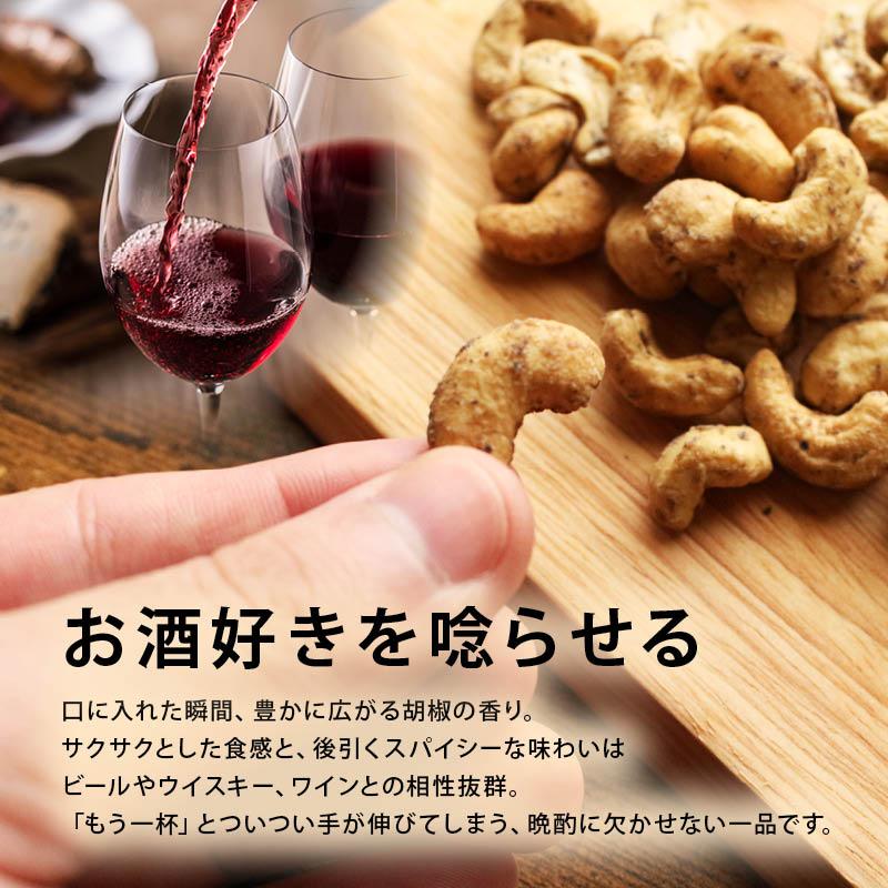 クリーミなカシューナッツに、ピリッとくる胡椒と塩味が絶妙にマッチ。一口食べたら止まらない、まさに大人のための贅沢おつまみです。