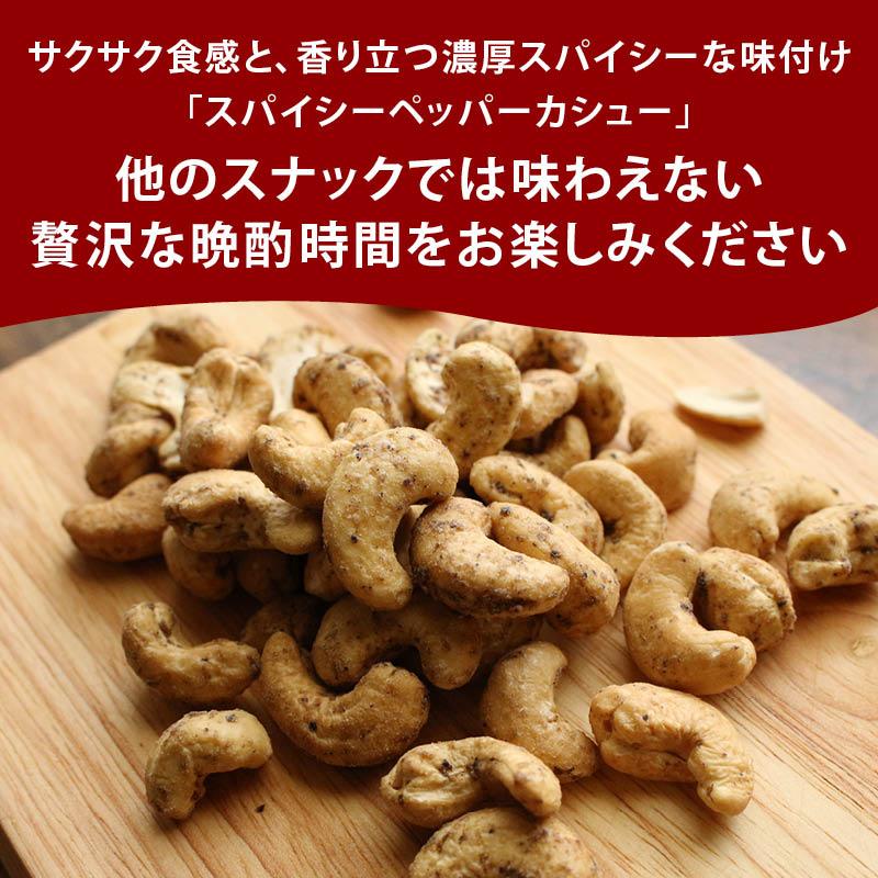 サクサク食感と、香り立つ濃厚スパイシーな味付け「スパイシーペッパーカシュー」他のスナックでは味わえない、贅沢な晩酌時間をお楽しみください。