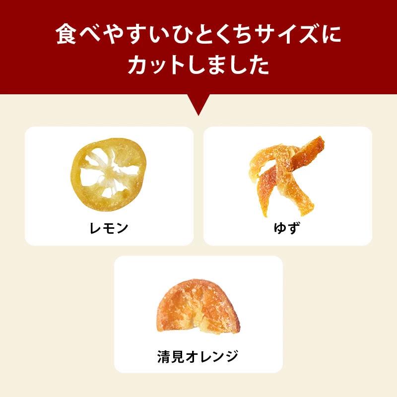 輪切りスライス、ピールなど柑橘の大きさや形状もさまざま!ひと袋で食べ比べができるオトクな商品です。