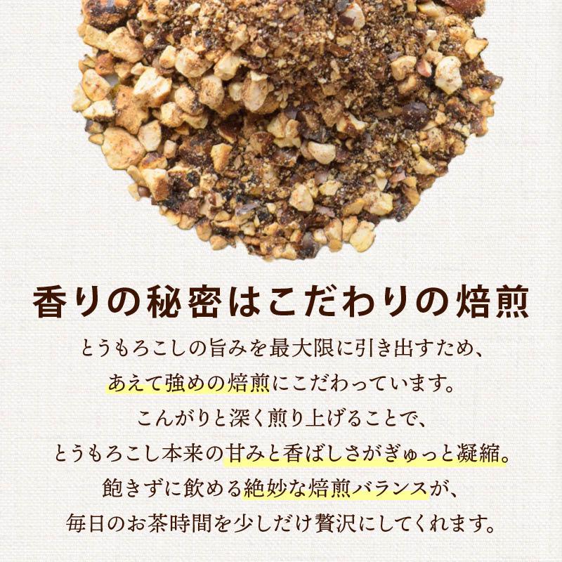 【香りの秘密はこだわりの焙煎】とうもろこしの旨みを最大限に引き出すため、あえて強めの焙煎にこだわっています。こんがりと深く煎り上げることで、とうもろこし本来の甘みと香ばしさがぎゅっと凝縮。飽きずに飲める絶妙な焙煎バランスが、毎日のお茶時間を少しだけ贅沢にしてくれます。