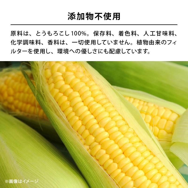 【添加物不使用】原料は、とうもろこし100%。保存料、着色料、人工甘味料、化学調味料、香料は、一切使用していません。植物由来のフィルターを使用し、環境への優しさにも配慮しています。
