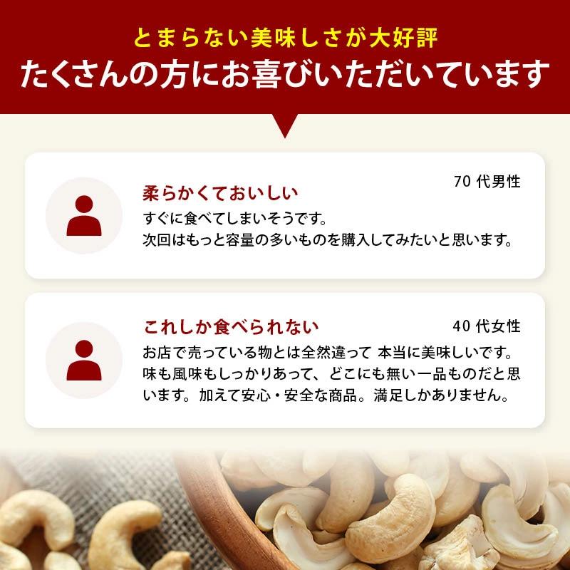 コク深いやさしい甘みがとまらないおいしさ。お料理やおつまみ、健康的なおやつなど、幅広く使える、無塩・無油の無添加カシューナッツです。