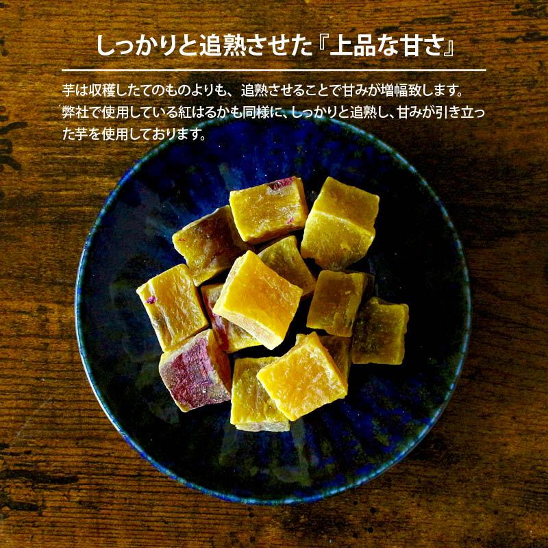 [商品説明]紅いもグラッセは、鹿児島県の広大な大地で、たっぷりの太陽の恵みを受けて育った紅はるかを使用した、お芋のおやつです。栄養豊富なさつまいもは、特に食物繊維がたっぷり含まれております。中でも紅はるかは糖度が非常に高く、素材本来の濃厚な甘みをお楽しみいただけます。しっとりとした口当たりとホクホクの食感が絶妙で、一口ごとに広がる優しい甘さが魅力です。食べ応えもあるため、小腹が空いたときのおやつとしてはもちろん、お茶や紅茶のお供にもぴったりです。さらに、袋から取り出してオーブンで軽く温めれば、まるで焼き芋のような香ばしさと甘みがさらに引き立ちます。